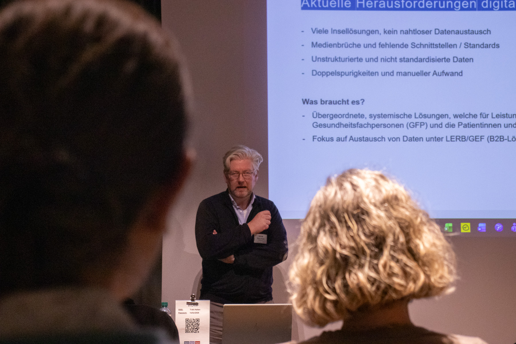 In seinem Referat illustrierte Jérôme Fux anhand konkreter Beispiele, wie KI den beruflichen Alltag sinnvoll unterstützen kann. Kathrin Lehner widmete sich dem Einsatz von KI im Marketing und zeigte die neuen kreativen Möglichkeiten auf, die sich durch KI eröffnen. Einen Blick in die Zukunft der Gesundheitsdaten ermöglichte das Referat von Walter Stüdeli. Im Zentrum standen das Elektronische Gesundheitsdossier (E-GD) sowie der Swiss Health Data Space von DigiSanté und die Frage, wie transparente und sichere Datenräume das Gesundheitswesen weiterentwickeln können.